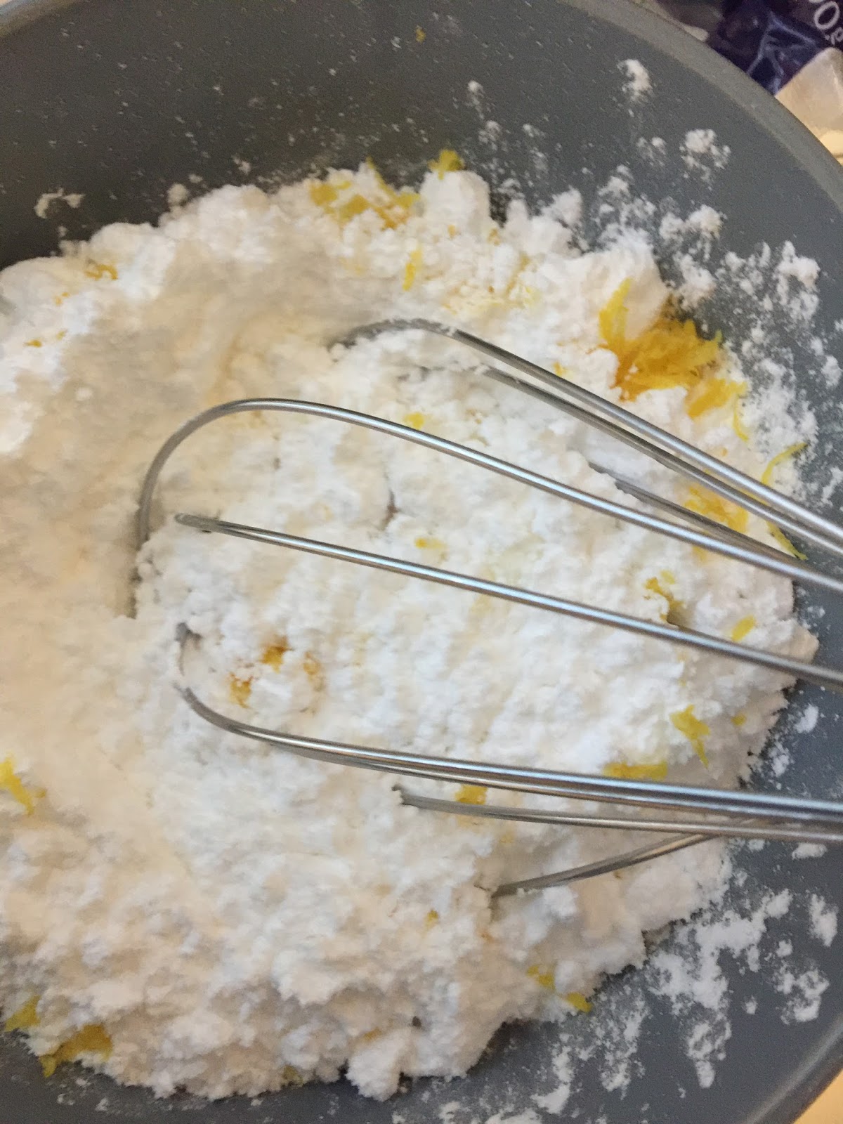 1. Colocar numa taça o icing sugar e a raspa de um limão, podem fazer na Bimby, 15 seg. vel.10,