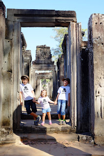 Antes de chegar a um dos portões de Angkor Thom existe este Templo que é digno de paragem. Aqui a pequenada fez sucesso com as t-shirts e muitos turistas estavam mais interessados nos amargos no que nos Templos!
