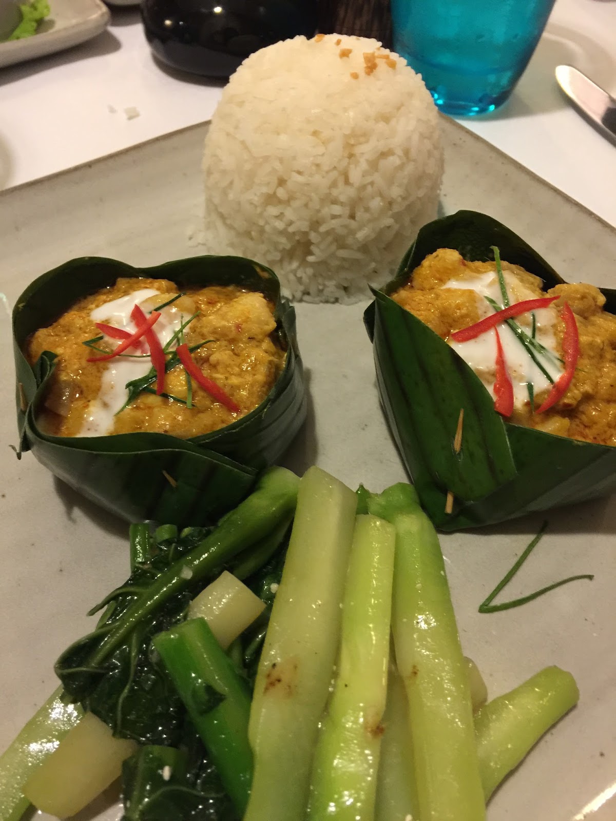 O jantar foi um pedido especial meu, queria provar dois pratos característicos do Camboja, primeiro um caril de peixe servido em folha de bananeira e o segundo o típico caril de frango com batatas e cenouras. Ambos estavam maravilhosos e ficaram aprovadíssimos!