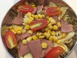 Almoço- Penne com atum e manjericão, brócolos e ananás aos cubosReceita do Penne - http://cakescookiesdreams.blogspot.sg/2016/01/penne-com-atum-e-manjericao.html?m=1