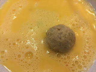 bolinhas ou em formato tradicional e passar por ovo batido e pão ralado.