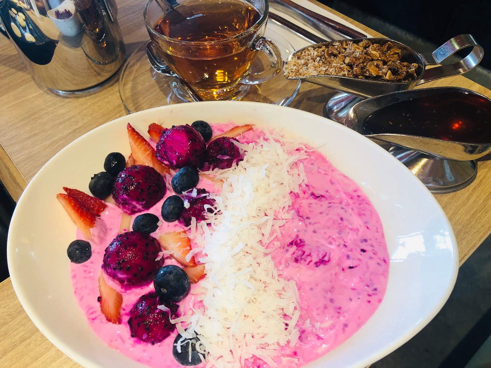 Always try to eat with some fresh fruit or fresh coconut that I really love it! And you also have yummy options, like greek yogurt, chia pudding with coconut milk, orange juice and even a toast with gluten free bread for some of the days that you are starving, a homemade granola bar!